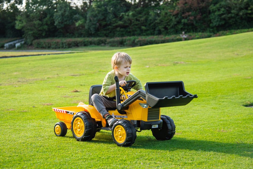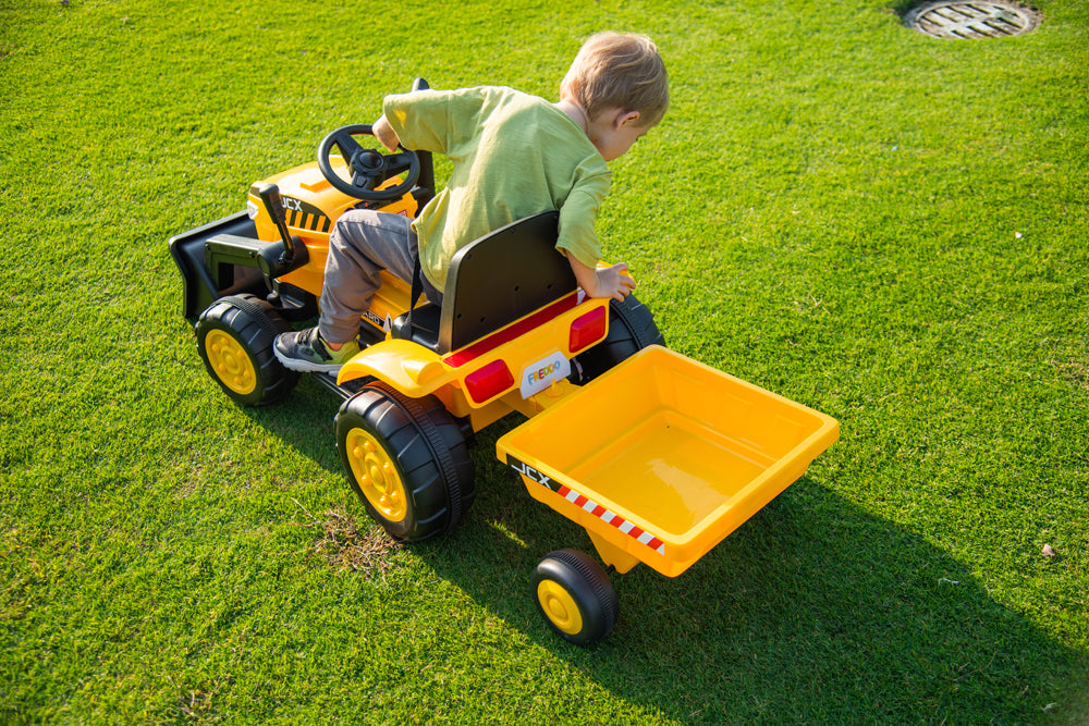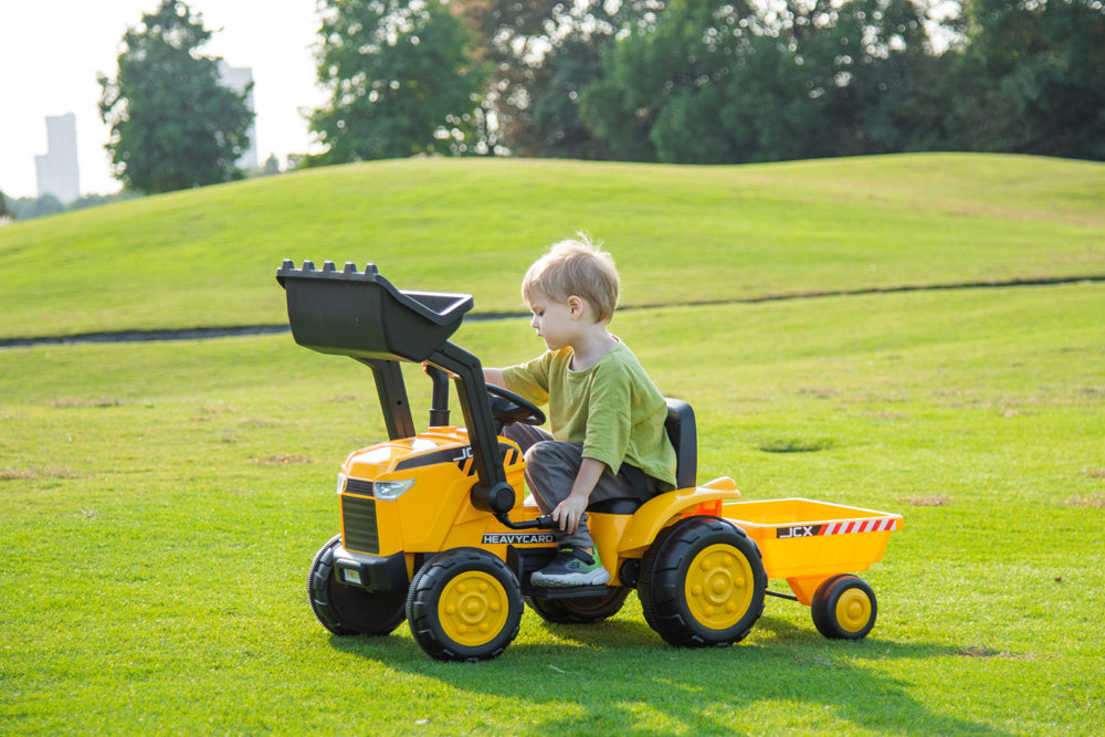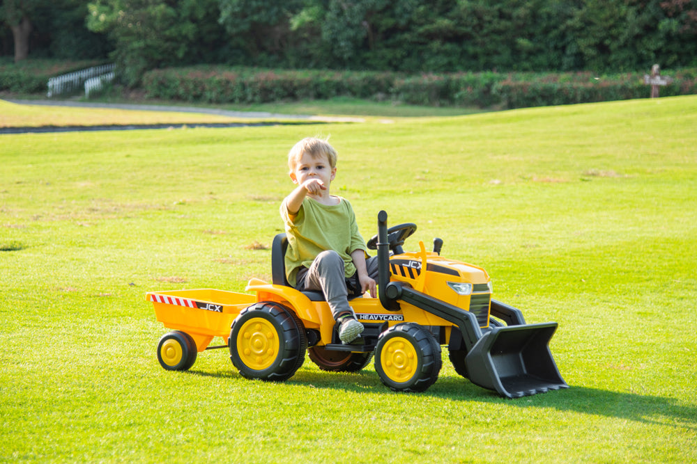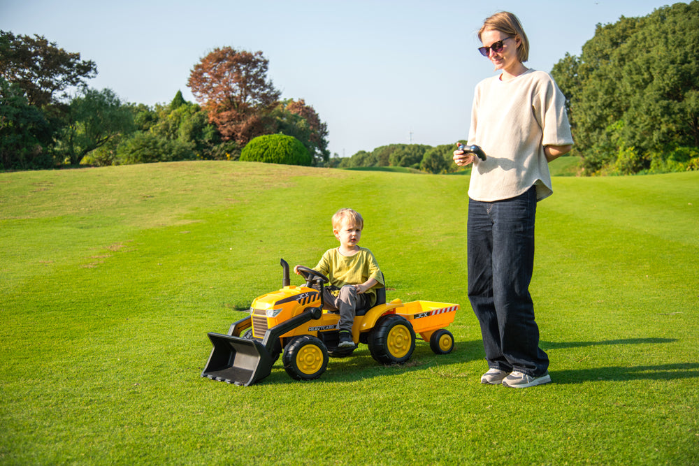2026 12V Excavator Tractor Trailer Kids Ride On One Seater Electric Truck with RC and Wagon