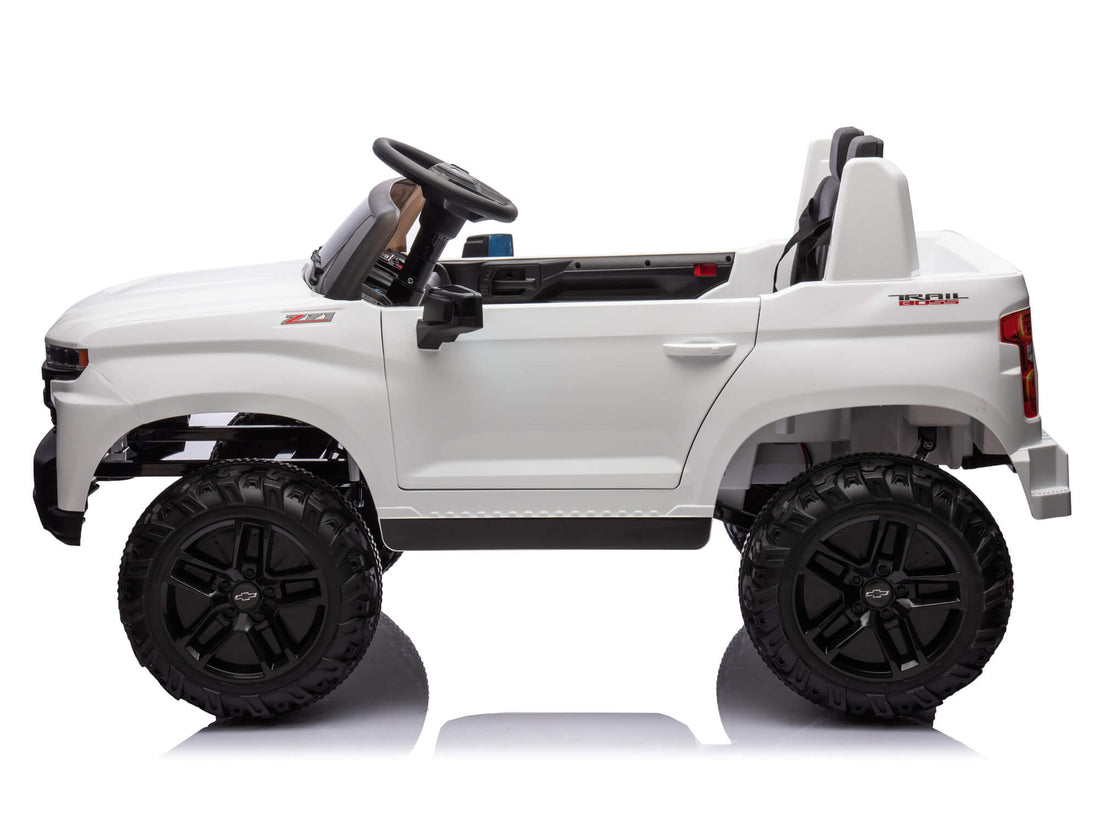 The strong and realistic 24V Chevrolet Silverado Ride-On Truck for Kids from Chevy is perfect for giant excursions and shared fun. Its two comfy leather seats make it ideal for siblings or companions riding together. Strong 120W gears and huge batteries give the truck smooth, consistent performance. It can tackle various terrains because of its 24V power system. Its 5 mph top speed gives young drivers a fun but regulated ride. The striking Silverado design thrills kids with its truck feel. Its sturdy construction boosts driving confidence. This ride-on is for families seeking high-powered fun.