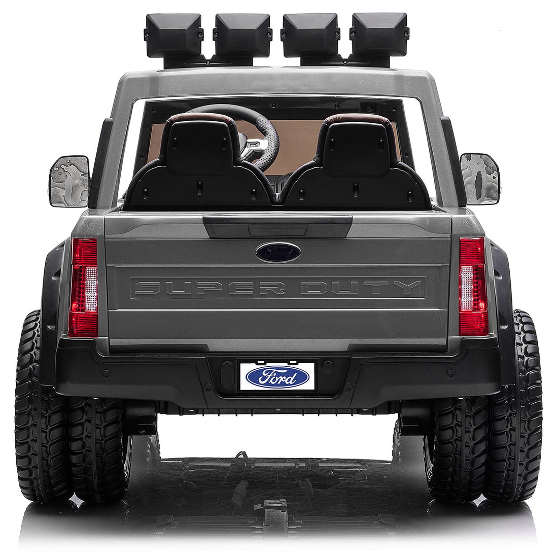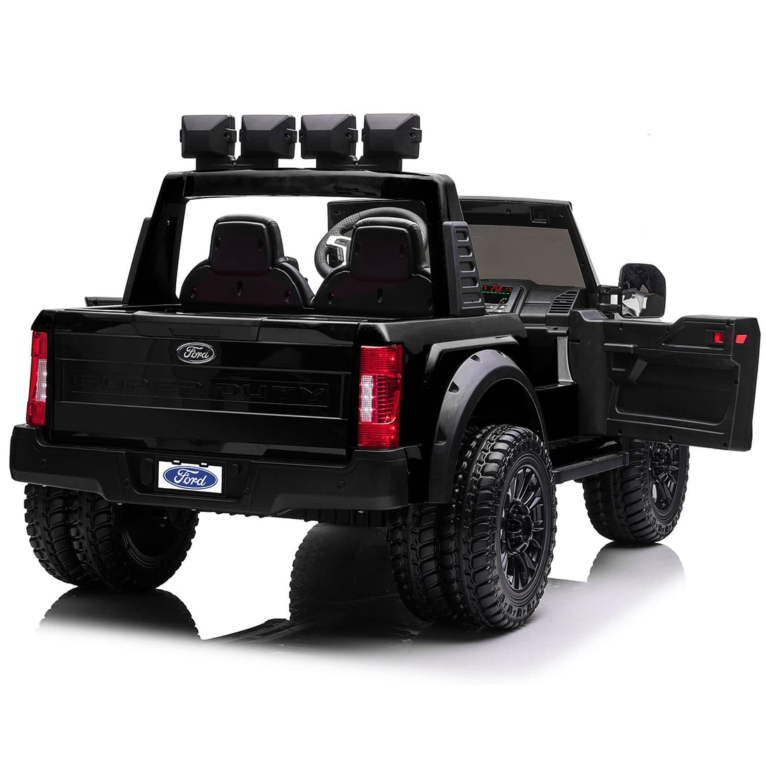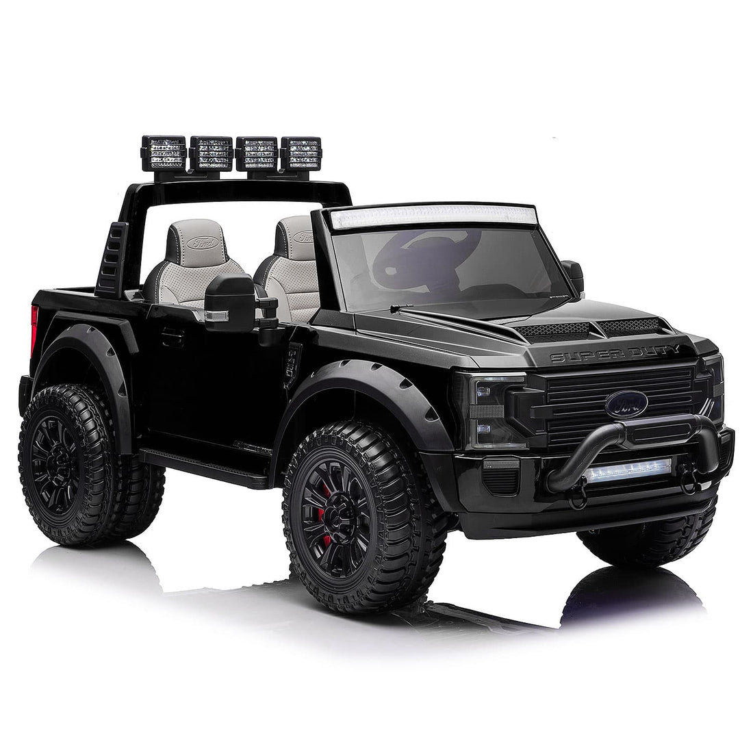 The Officially Licensed Ford F450 Super Duty Dually Custom Edition 24V Ride-On Truck delivers a bold and realistic driving experience for young truck fans. Manufactured under official license from Ford Motor Company, it features authentic design details and a powerful presence. This two-seater ride-on is equipped with soft vegan leather seats that are adjustable in two directions for added comfort. It includes an MP3 player with Bluetooth wireless music streaming for entertainment on every ride. Foam rubber LED wheels provide smooth traction and a realistic driving feel. An underbody LED light kit and working LED light bars enhance visibility and style. The durable construction is built to handle active play. Designed for kids ages 2-7 years old, it supports supervised outdoor fun. The maximum combined rider weight is 120 lbs. This model combines comfort, safety, and impressive design in one premium ride-on.