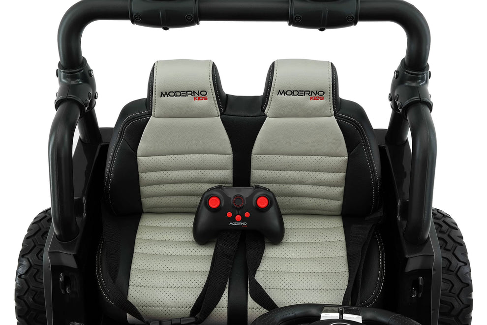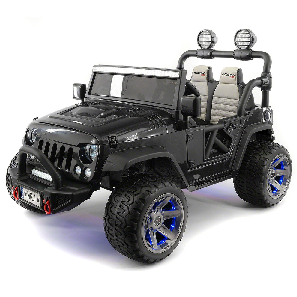 The Lightning 24V Jeep Style Battery Powered Two-Seater Electric Ride-On Truck gives young drivers power, style, and fun. It comfortably seats two toddlers 2-4 years old or one kid up to 6 years old in its sturdy truck style. A powerful 24V system with a replaceable large-capacity battery and overload protection ensures reliable performance. Dual 775 special motors enable smooth, powerful driving on various surfaces. EVA foam rubber LED wheels improve traction and driving simulation on the ride-on. An underbody LED light kit and functional LED light bars improve visibility and appearance. A Bluetooth-streaming MP3 player is included. For further confidence, this product satisfies ASTM F963 U.S. consumer toy safety requirements.