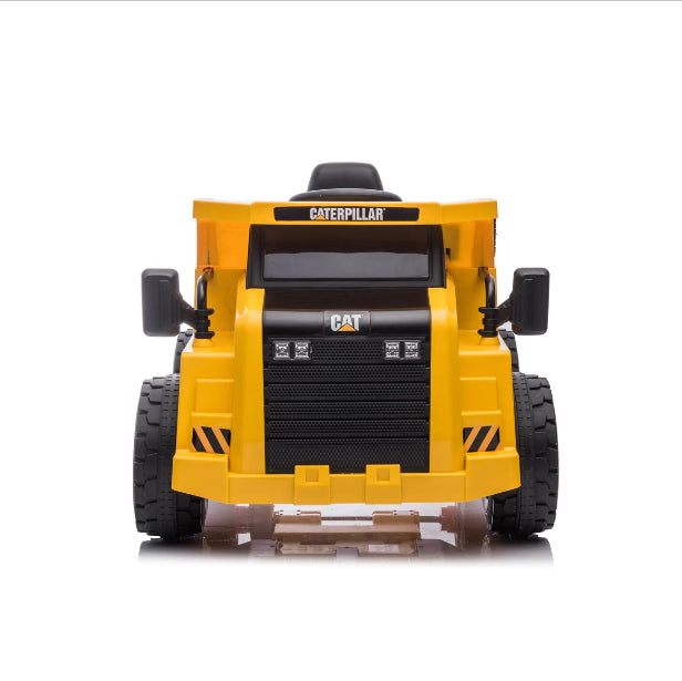 The CAT Dump Truck Electric Ride-On is built tough for kids ages 2 to 6 and will turn your child's playtime into a construction adventure. This sturdy one-seater truck is painted in the signature CAT yellow. It has a working front headlight, realistic engine sounds, and a working shovel for scooping up fun.