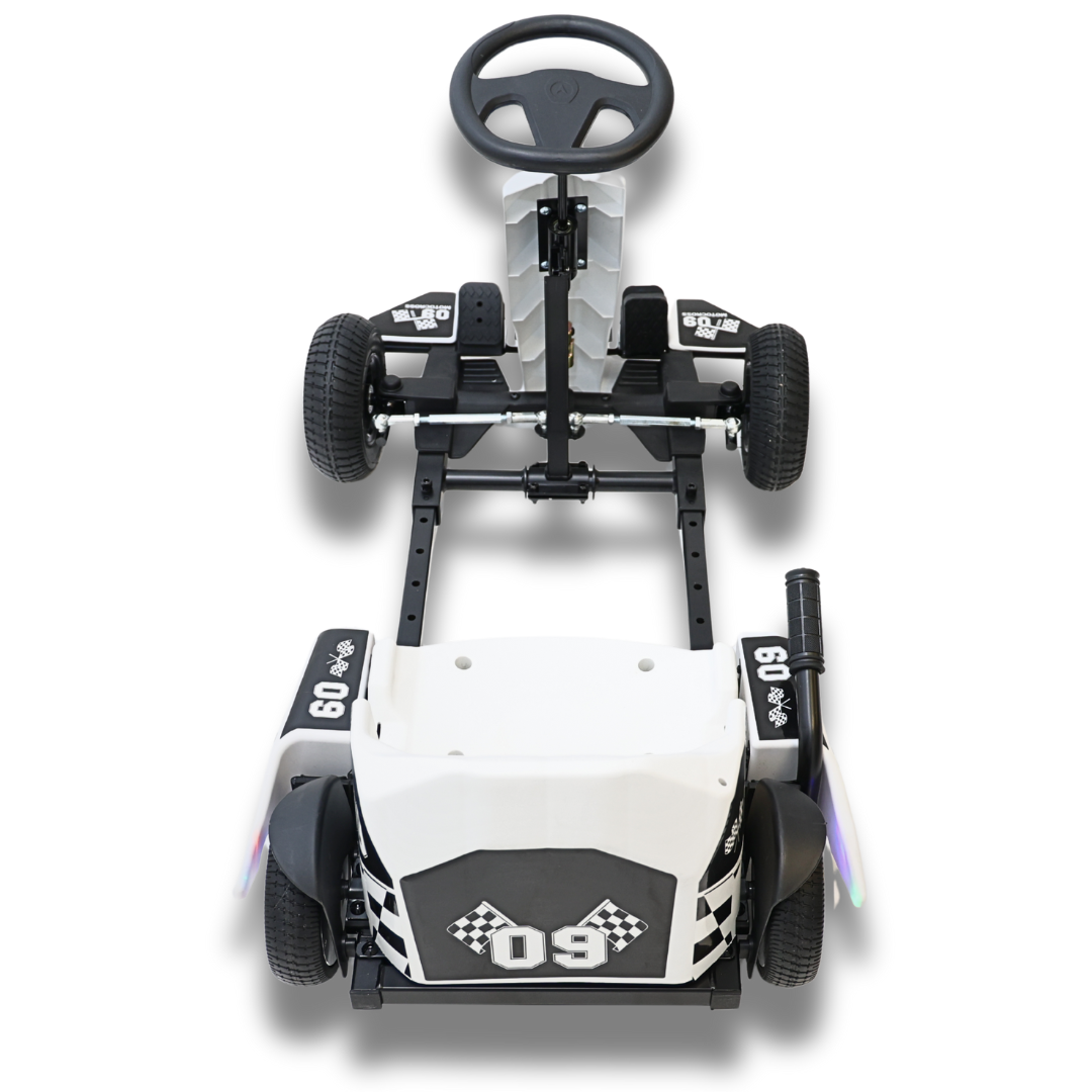 Our new electric go-kart has a strong 36V lithium battery that makes it go faster, last longer, and run more smoothly. It also comes in bright, eye-catching colors.