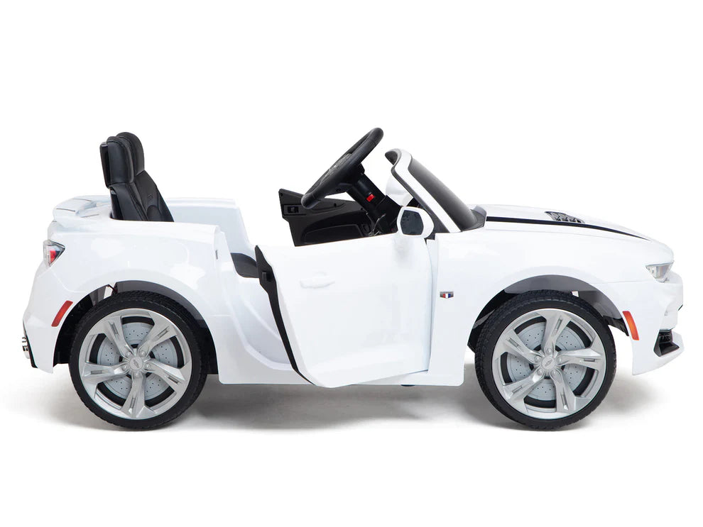 Introducing the latest addition to our collection: the 12V Camaro ride-on car for kids, officially licensed by Chevrolet! This car, available in stunning pink, yellow, and black colors, offers a complete package of fun and excitement for your little ones. With adjustable speed, an MP3 player, a remote control, and dynamic LED lights, the Camaro promises an immersive driving experience for your children. Don't miss out on our latest deal; grab the Camaro now!
